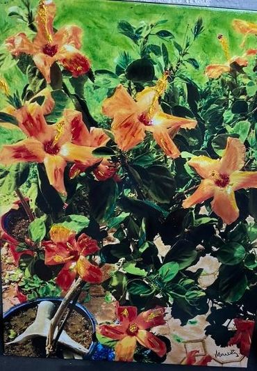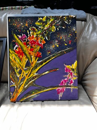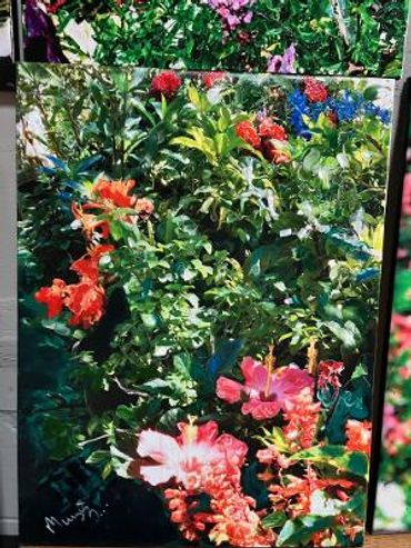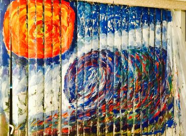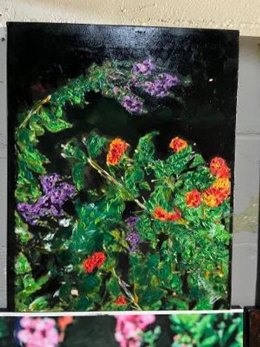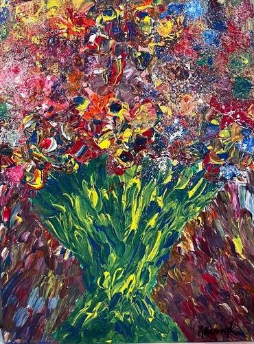 I use many different mediums, such as enamel, acrylics, and pastels. I believe that working in a single medium is restrictive to my artistic process. Each idea manifests in its' own individual style. I love bold color and utilize the colors of nature in my art.